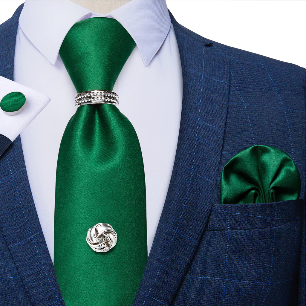 Conjunto de Gravata Masculina de Luxo Verde 8cm