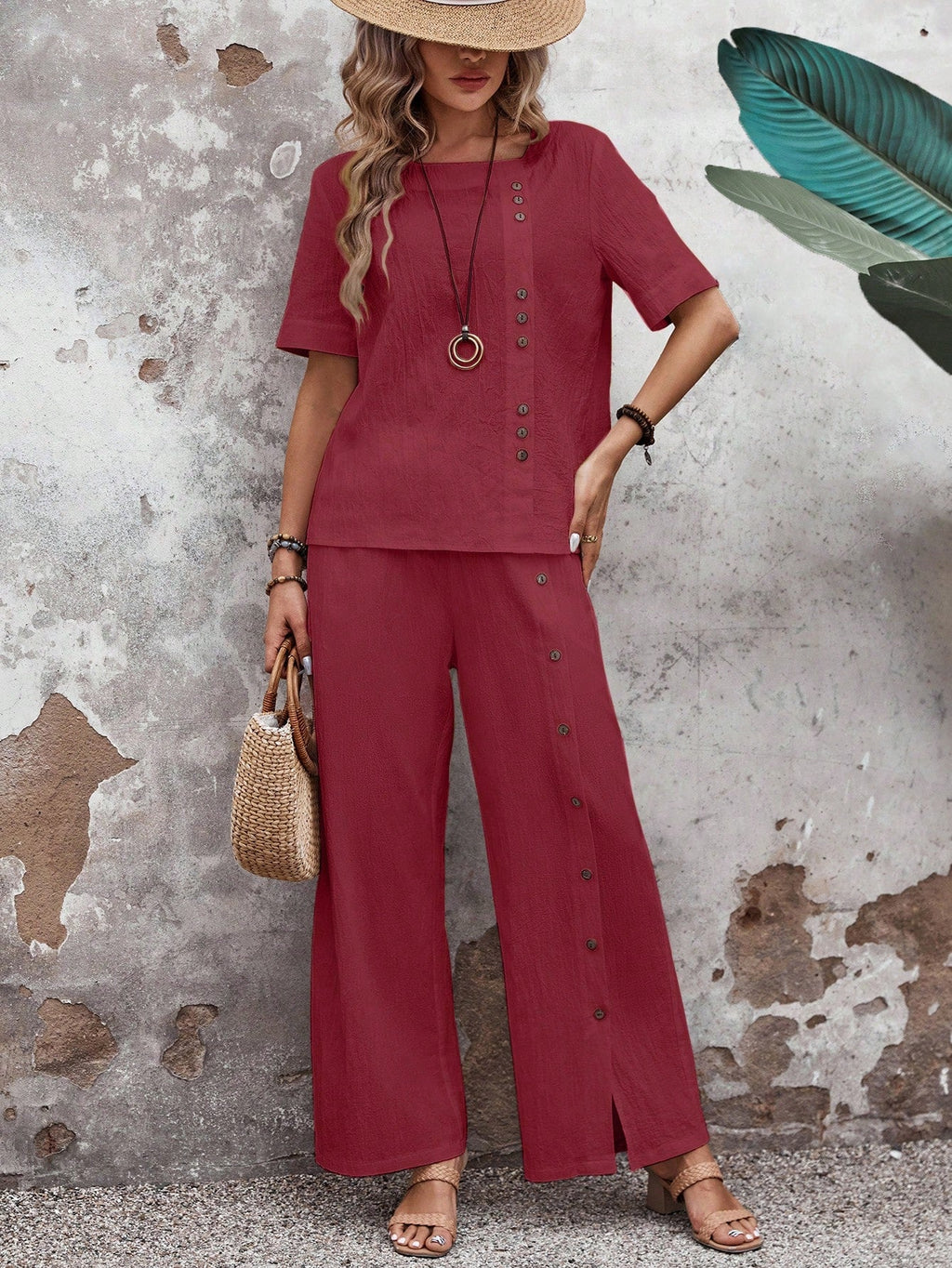O Look Que Define Sua Elegância Casual – Conjunto Feminino com Botões Alta Costura