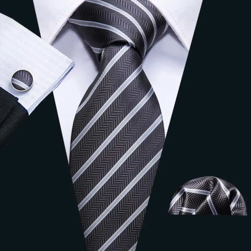 - Conjunto de gravatas com: Gravata de Pescoço. Lenço de Bolso e Abotoaduras