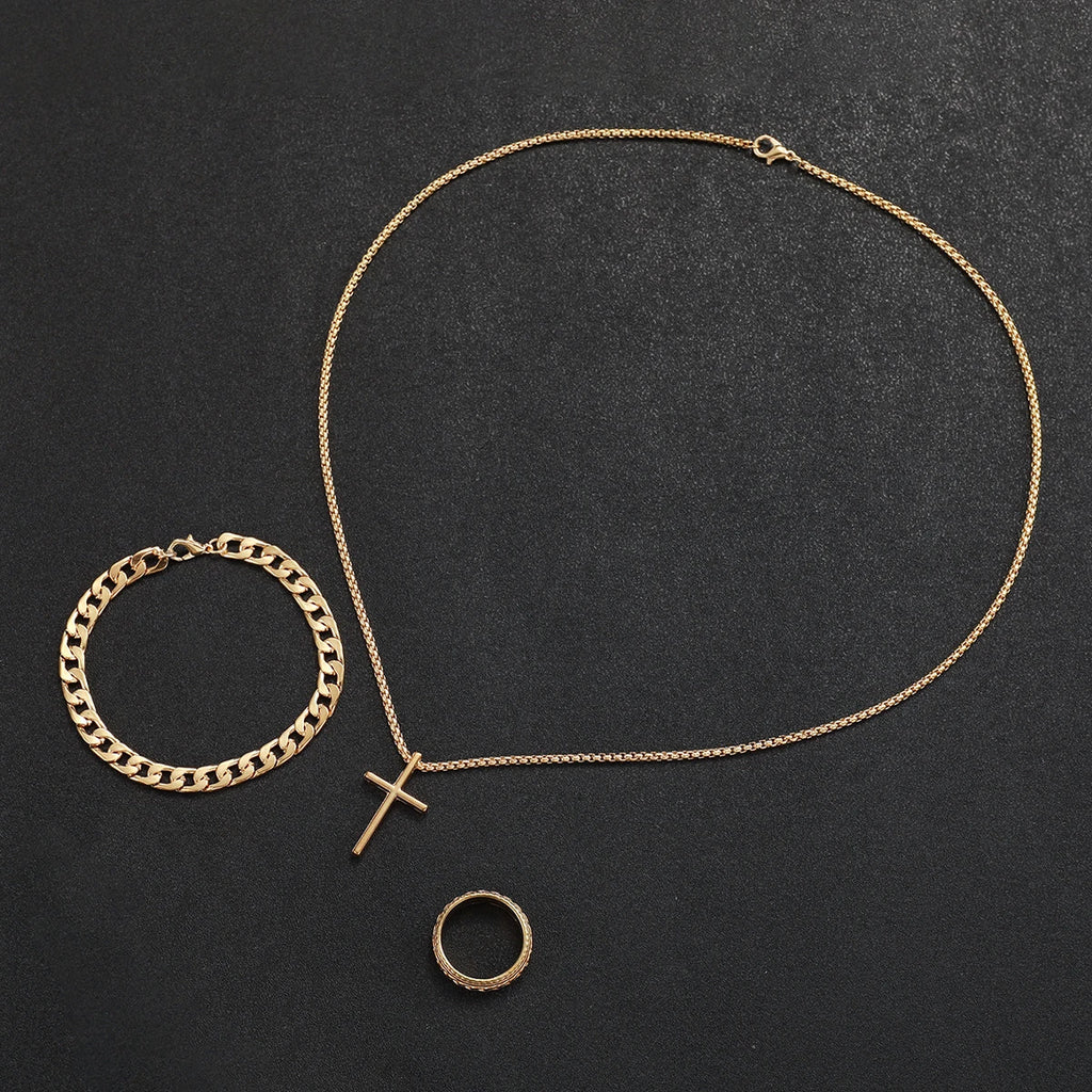 Kit de Presente Masculino de Luxo 4 Peças Relógio, Colar, Pulseira e Anel