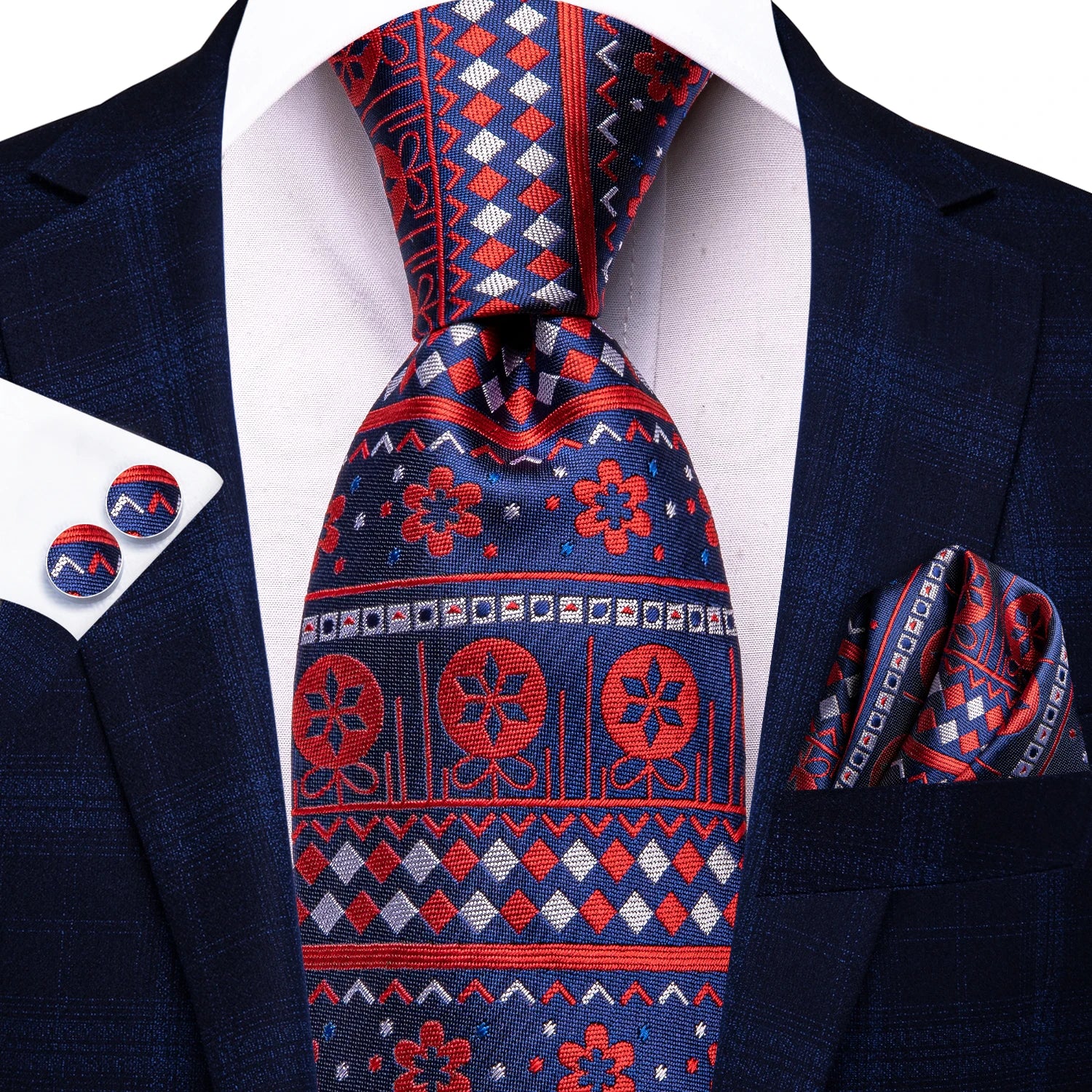 Eleve seu estilo com este kit completo de gravata masculina acompanhado de elegantes abotoaduras Pisa.