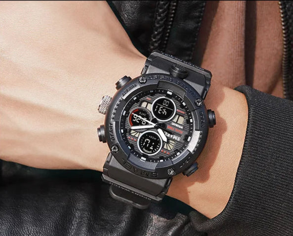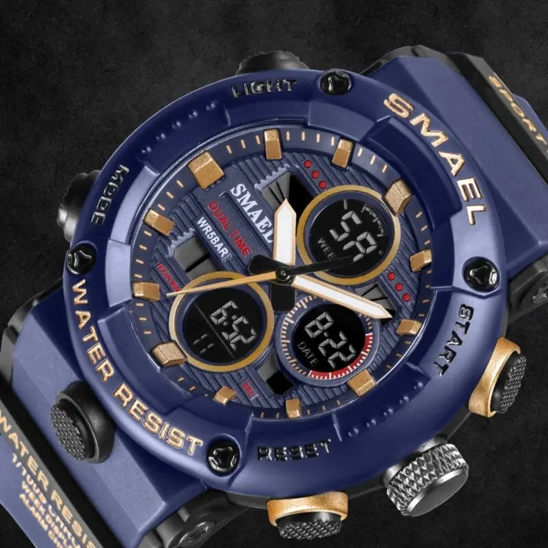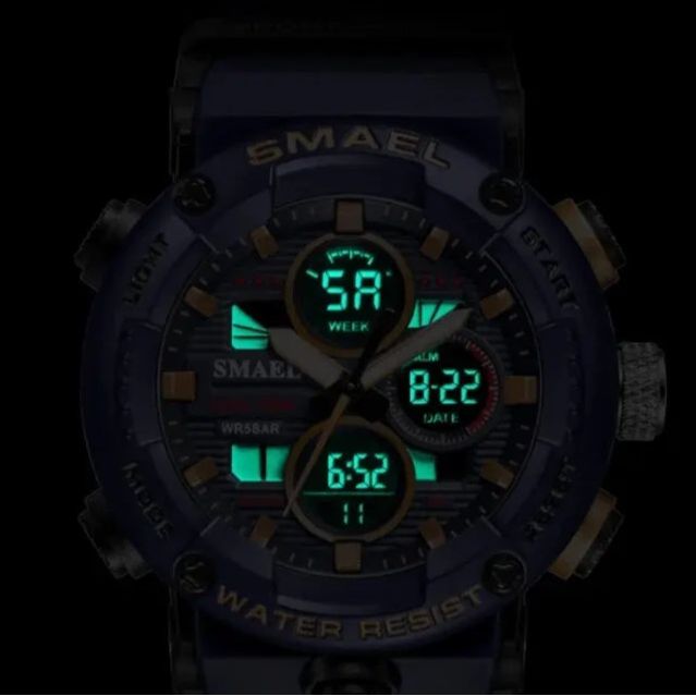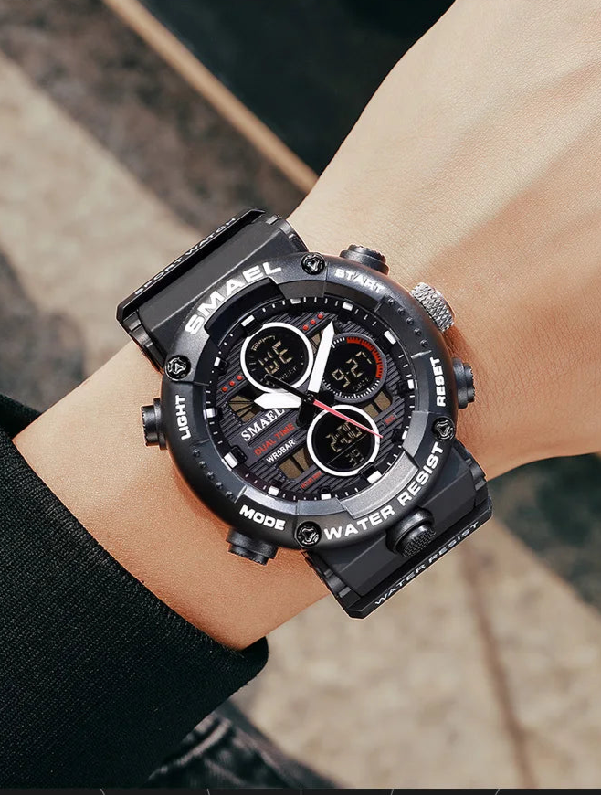 Você merece um relógio que acompanhe seu ritmo intenso — com tecnologia, durabilidade e atitude! O Relógio Masculino Esportivo à Prova d'Água é a escolha perfeita para homens que não abrem mão de funcionalidade e estilo. Com design robusto, movimento de quartzo dual display e resistência de até 50 metros, ele é feito para quem vive em alta performance — seja na academia, na piscina ou no dia a dia.