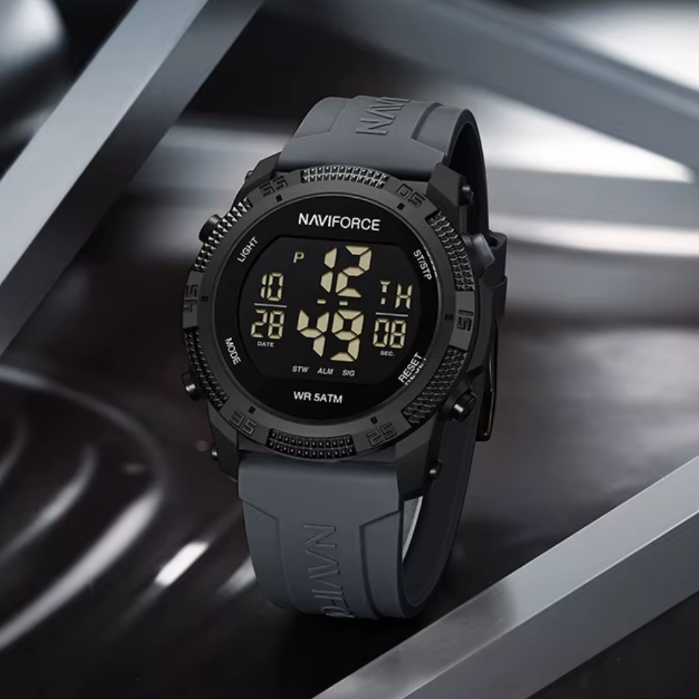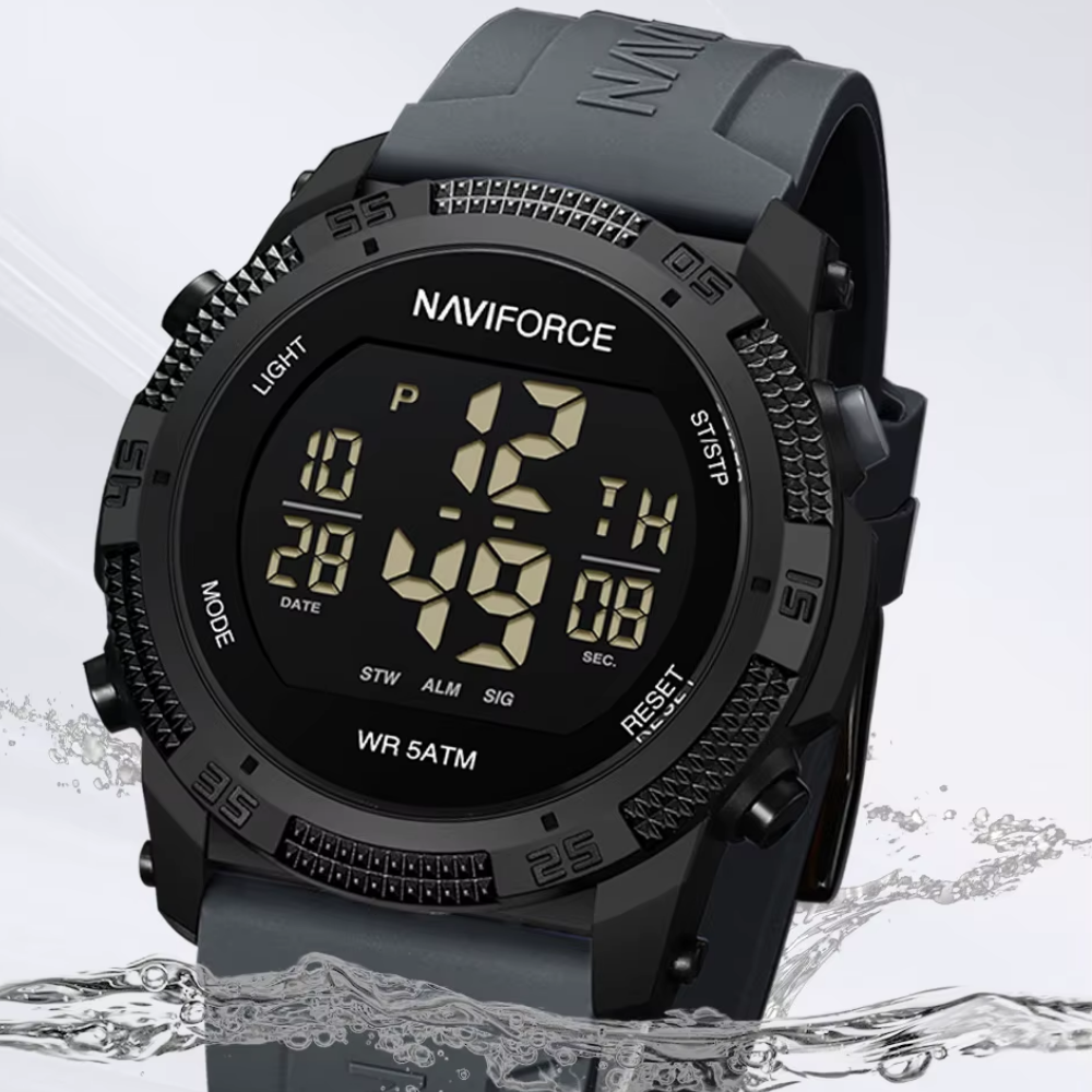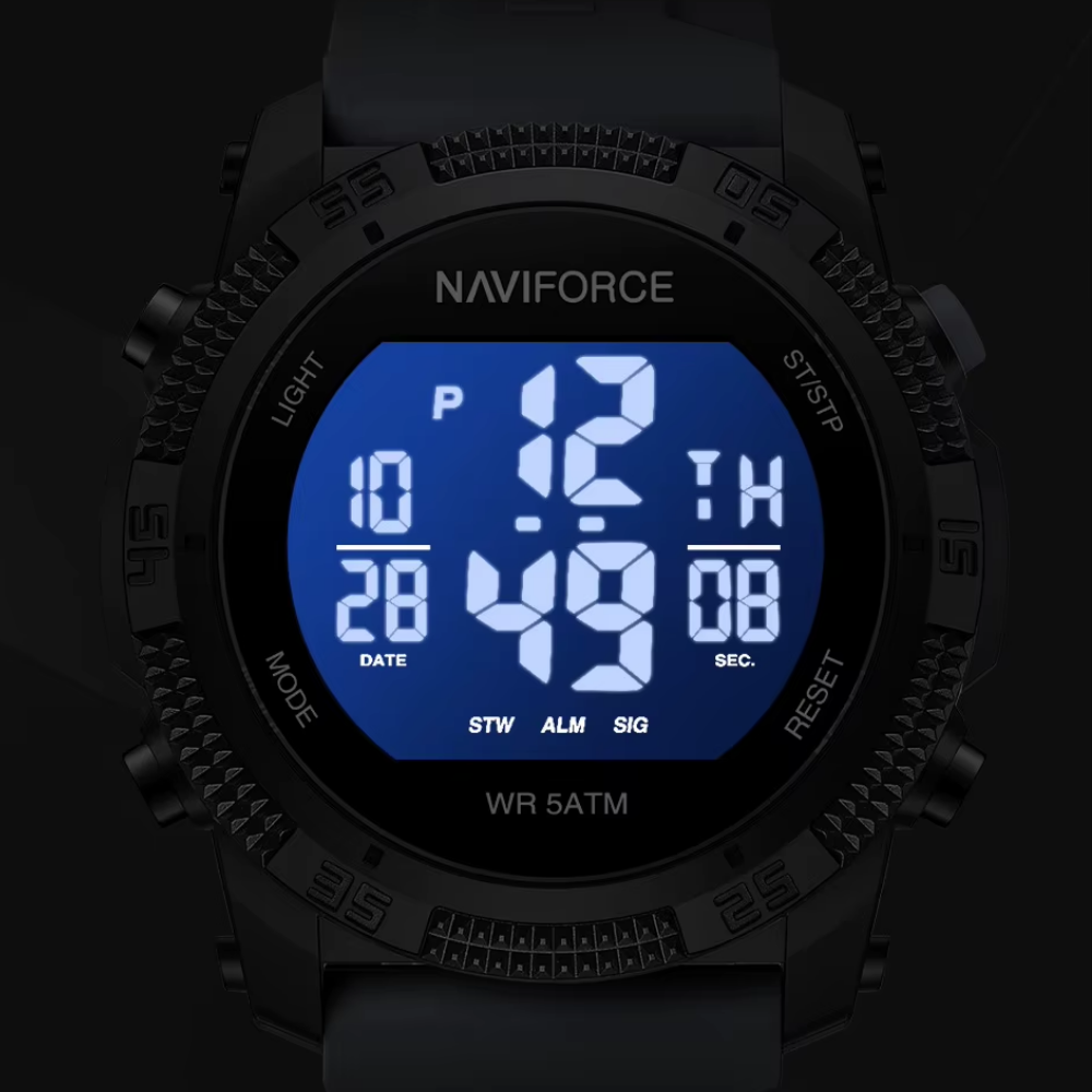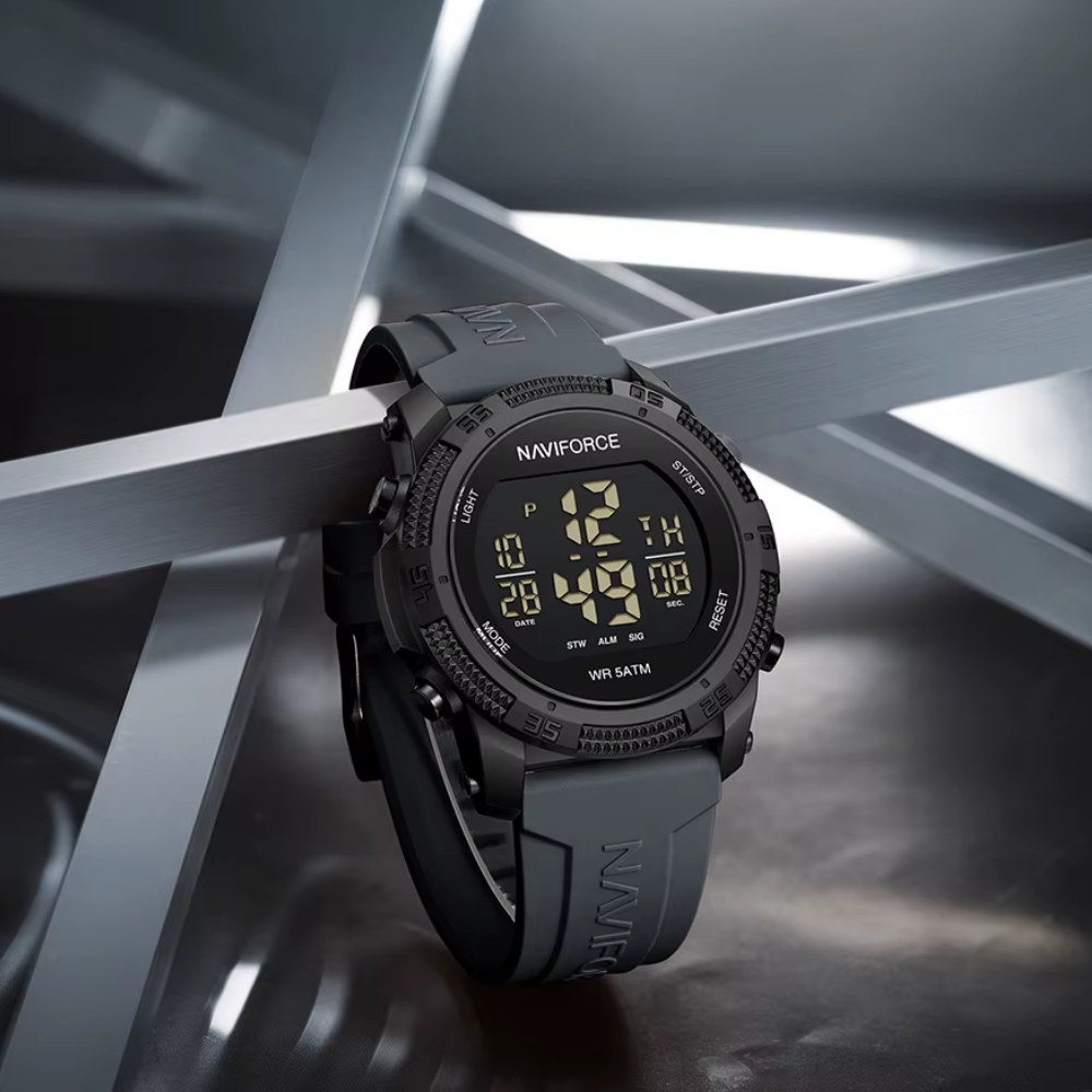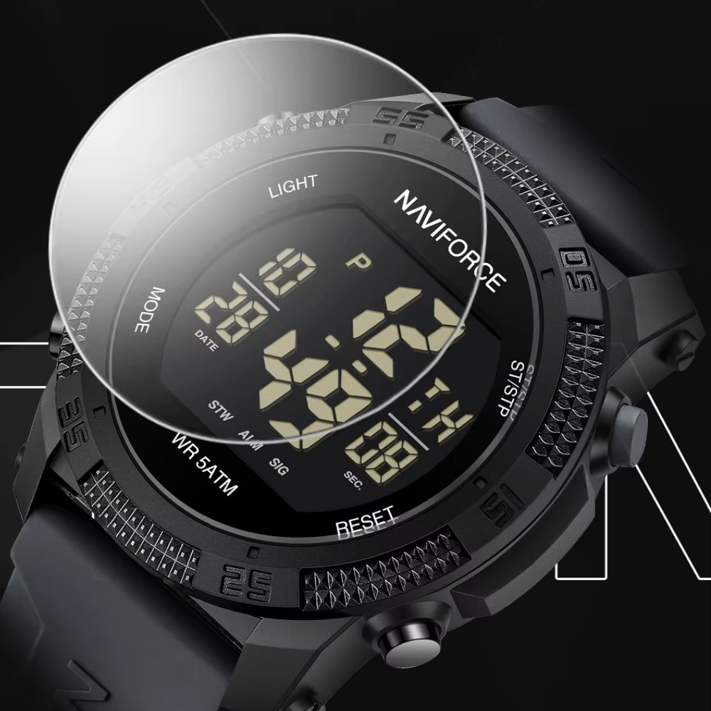 Com display LCD de alta legibilidade, pulseira de silicone ultraleve e design inspirado em equipamentos de campo, ele é feito para quem vive em movimento: da academia às ruas, das trilhas aos after hours.