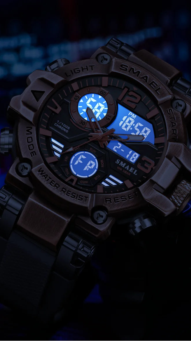 Com calendário, dual display e design moderno, ele não só mostra o tempo – ele mostra quem está no controle.