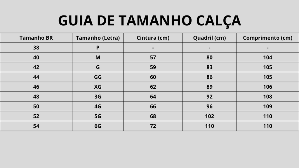 - ✅ Tamanhos do M ao 6XG – pensado para todos os biotipos